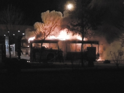 刘师傅回忆起事发时的场景说:“我一回头看见车上全是火,不过门子没开,过了几秒钟门开了,下来的人身上全是火,我们就找上灭火器。有轮胎的爆炸声。车的顶子、从前到后全是火。一直到消防队来了,火就灭了?!?/p>