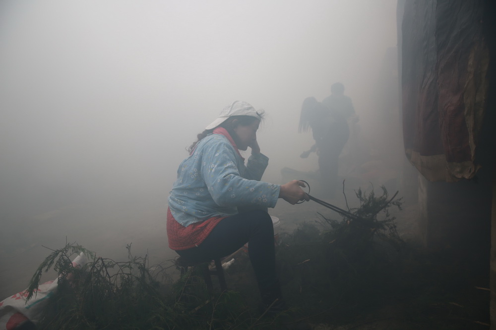 四川达州腊肉熏制点烟雾笼罩 市民“全副武装”用上潜水镜