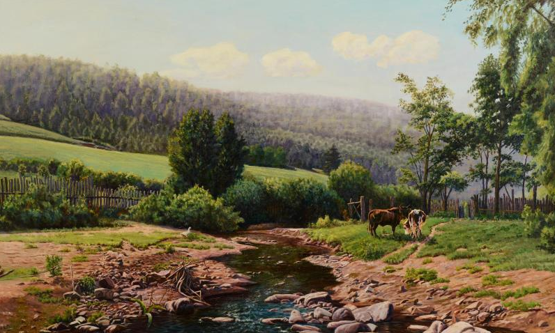 《阿城风景》以写实主义手法描绘东北林间静谧的山林和溪水,《乌苏里江的朝阳》中渔人摇桨出没在晨光熹微的江上,印象派的味道扑面而来,《拖拉机》一画中,无人驾驶的拖拉机、废弃的轮胎和油桶,传递出作者浓浓的乡愁……1月6日,由中国艺术报社主办,黑龙江省美术家协会协办的“天地?无垠”王还霆油画作品展开幕式在中国人民革命军事博物馆隆重举办,共展出著名油画家王还霆创作的故乡主题风景、人物油画作品和历史题材作品共计130余幅,作品集中展现出天地无垠之大美和历史深沉的沧桑之感。展览将展至1月10日。