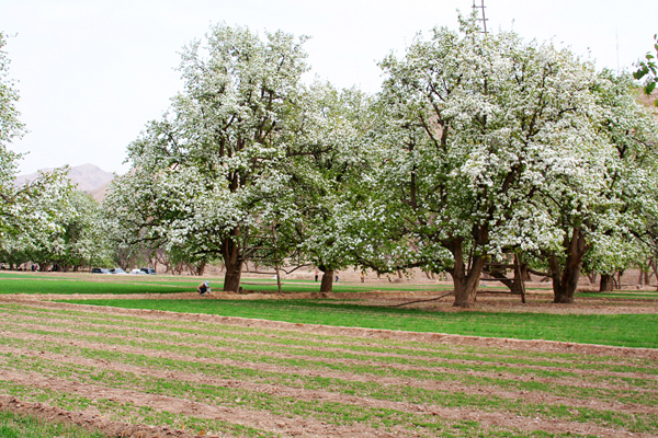 每年春季梨花盛开和秋季黄梨缀满枝头的时候,特意来宁夏中卫南长滩村观赏梨花的游客接踵而至。这里的梨园之所以闻名全国,就是因为这上百棵几百岁树龄的老梨树繁花似锦。走到跟前,记者发现这些梨树的树冠都比以往见到的要大得多,有的占地大半亩,底部要三四个人才能合抱。