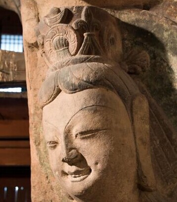 云冈石窟一菩萨像引关注:含笑露齿 还有一对酒窝