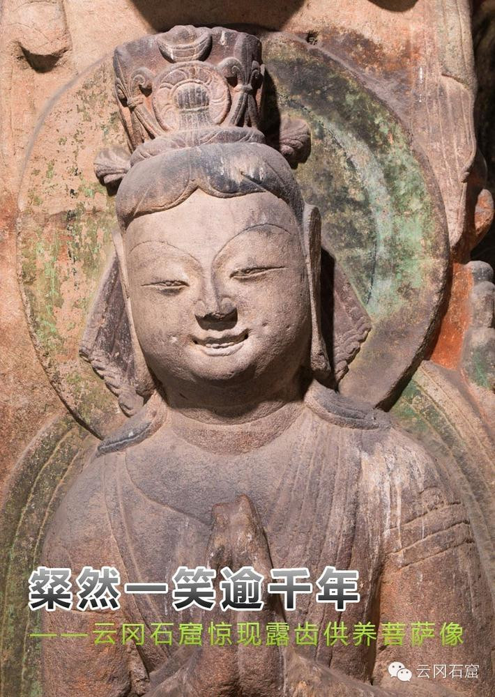 关键词:云冈石窟 一菩萨像 引关注 含笑露齿 还有一对酒窝