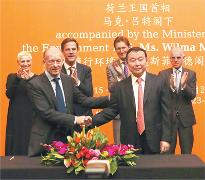 2015年3月25日,正值北京银行与ING集团签订引资协议十周年之际,双方续签战略合作协议。右二为北京银行董事长闫冰竹。资料图片