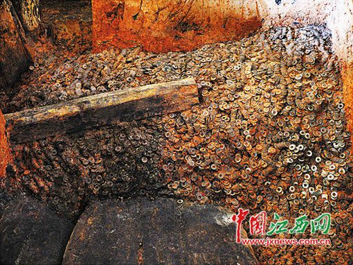 关键词:南昌汉墓 两吨多古钱 打包清运 造型保持 原始状态