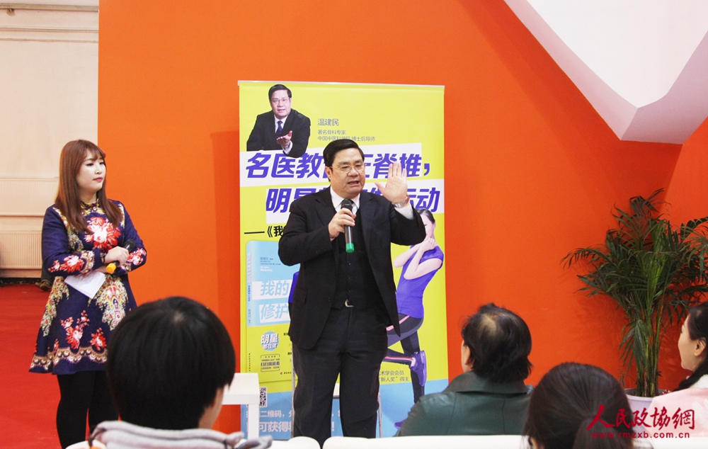 本网讯(记者 李木元)2016年1月7日,由中国轻工业出版社举办的《我的脊椎修护攻略——颈胸腰核心运动》新书分享会“名医教你正脊椎,明星带你做运动”在京举行。 全国政协委员、著名骨科专家温建民教授作为图书的作者亲临现场,向大家传授脊椎的养护诀窍。书中动作的演绎者、著名演员、电视剧《黛玉传》林黛玉的扮演者闵春晓也来到现场,和大家欢乐互动。