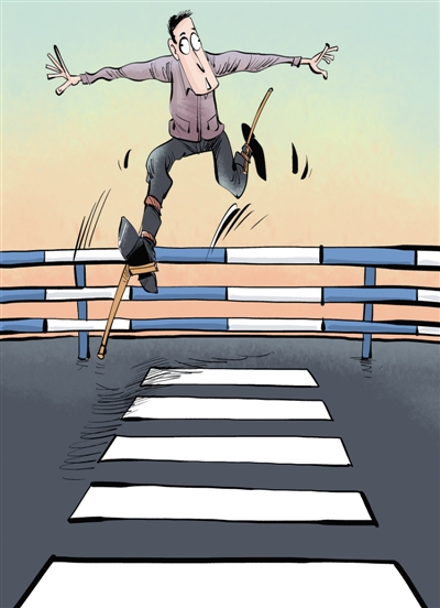 斑马线本是为了便民、利民,但在重庆市渝中区沧白路上,却有一处让人提心吊胆的“任性”斑马线——斑马线中间竟然横着一条防撞栏杆……每天路人通过斑马线后,不得不走上机动车道,沿着马路边绕行30米以后才能过马路。网友:这人行道刘翔都过不去(1月11日中新网)漫画/勾犇