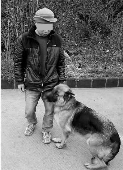 德国牧羊犬在江某身边很温顺。