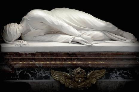 圣塞西莉亚的墓冢。圣塞西莉亚是第一位不腐圣人。这座著名的塑像描绘的是她的遗体被发现时的样子。注意她脖子上由于殉教而留下的伤口。位于罗马特拉斯提弗列区。