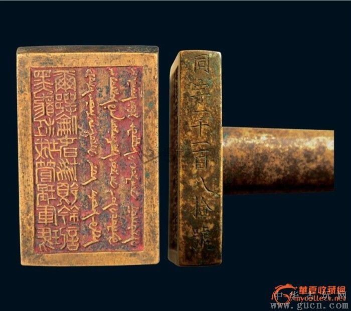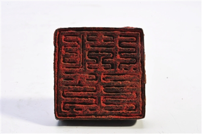 邓州博物馆收藏一枚铜质直纽正方形?。迹?。该印通高8.8厘米,边长7.3厘米,台厚1.4厘米;印背阴刻4行、每行3字,共12字九叠篆阳文:“南阳中护卫前千户丁管军印”,纽背右边刻阴文楷书“南阳中护卫前千户丁管军印”;纽左边刻“永乐元年(1403)三月□日、礼部造”;印左侧边阴刻楷书“重字六十二号”。该印为标准品明代九叠篆直纽型百官印,是研究明初地方卫所统兵制和官印制作管理的物证。