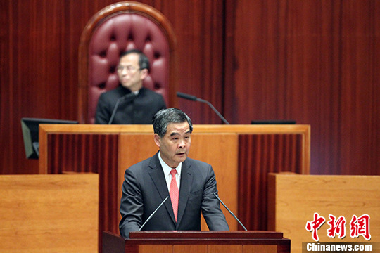 1月13日,香港特区行政长官梁振英在立法会发表二零一六年《施政报告》。 中新社记者 洪少葵 摄