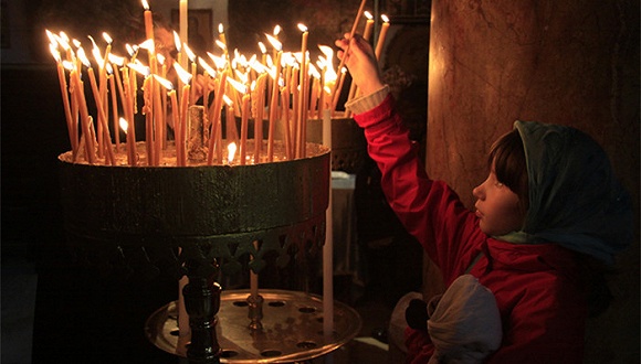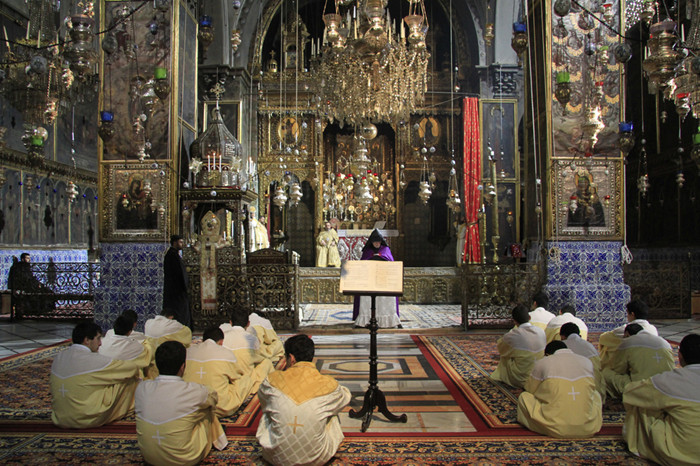 一名在伯利恒圣诞教堂里的小朝圣者。图片来源:Hanan Isachar