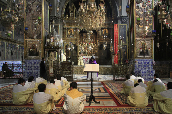 耶路撒冷老城内,圣安妮教堂里正在举行天主教的圣母受胎节活动,这座教堂建于12世纪十字军东征时期,就建在拜占廷教堂的废墟之上,这里曾是圣母玛利亚之母——安妮的出生之地。图片来源:Hanan Isachar编辑:陈佳