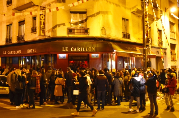 1月13日晚,人们聚集在巴黎第10区“时钟”酒馆前,庆祝其重装开业。