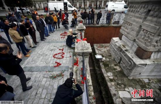 当地时间2016年1月13日,土耳其伊斯坦布尔,当地民众前往爆炸案现场悼念受害者。