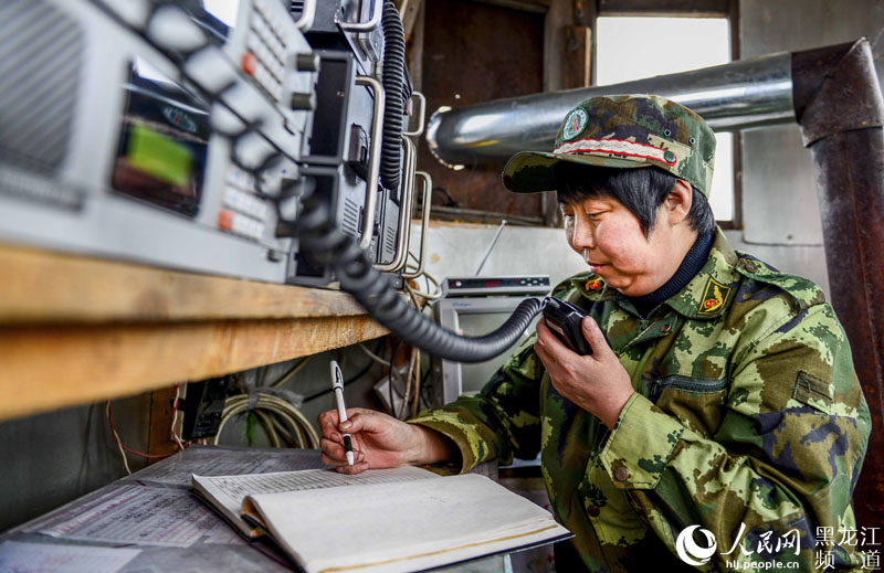 朱彩芹在瞭望塔上下传信息。