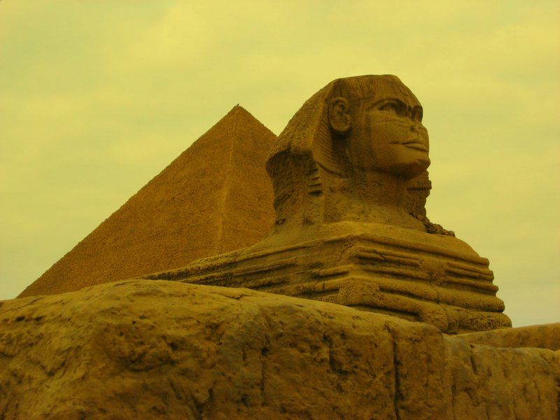 斯芬克斯(狮身人面)与法老们的金字塔仍静静地立在广袤的沙漠中,等待人们来解开它们身上的谜团。