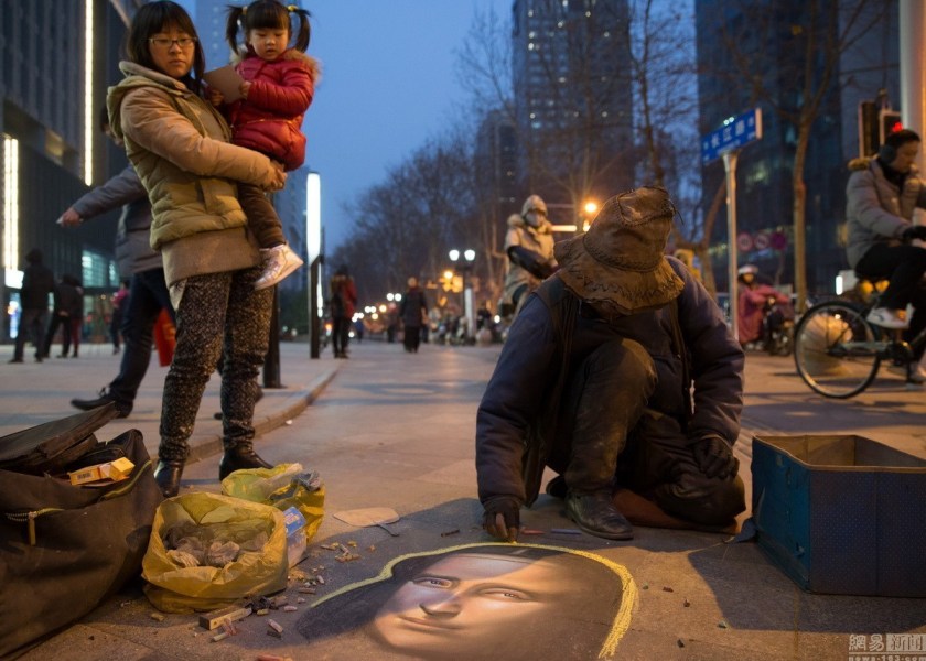 关键词:流浪汉绘制蒙娜丽莎 粉笔画大叔
