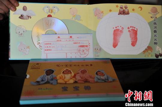 石家庄市妇产医院开发区分院六楼产房内出售的包含光盘在内的婴儿出生纪念册。 赵飞 摄