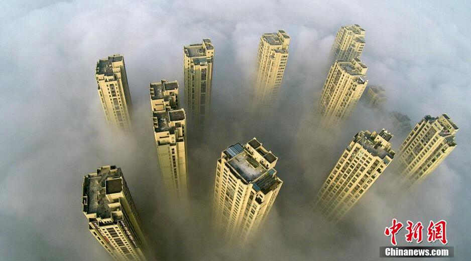 1月16日,浙江省杭州市,杭州气象台消息,浓雾让很多地方能见度不足200米,浓雾在给交通带来不便的同时,却又给整个城市描摹出一幅幅蓬莱仙境的画面。秦人 摄 图片来源:视觉中国