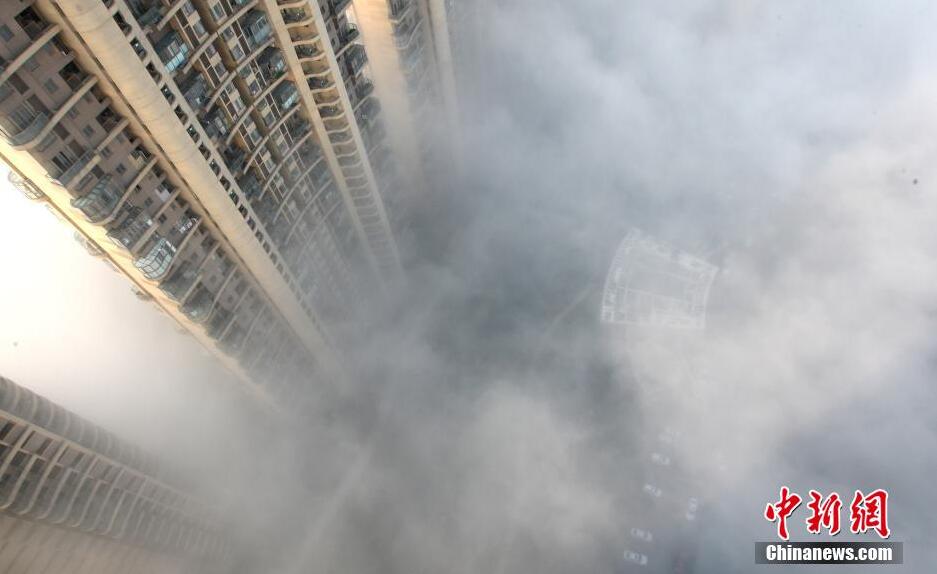 1月16日,浙江省杭州市,杭州气象台消息,浓雾让很多地方能见度不足200米,浓雾在给交通带来不便的同时,却又给整个城市描摹出一幅幅蓬莱仙境的画面。秦人 摄 图片来源:视觉中国