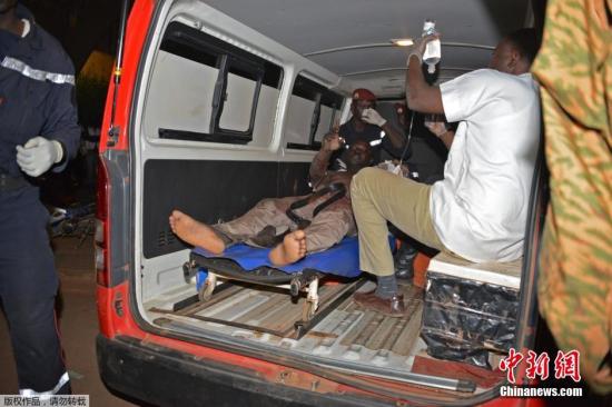 据外媒当地时间1月16日报道,布基纳法索内政部长称,目前已经有126名人质从遭恐怖分子袭击的首都酒店中逃出,多名恐怖分子被击毙。图为受伤人员被送往医院?! ?/p>