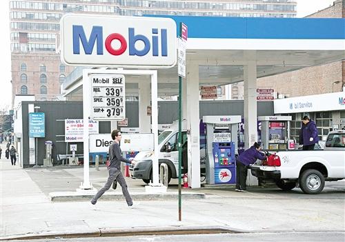 随着国际油价不断跌破历史新低,石油生产国和企业日子也不好过。很多石油生产商债务增加,面临破产或重组风险。图为纽约市内的美孚石油加油站。