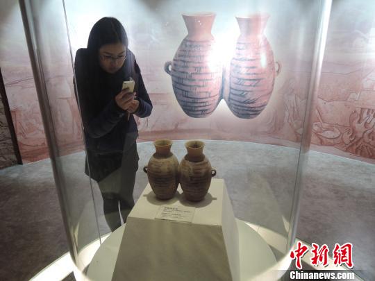 “彩陶双连壶的真品保存在河南博物院,而眼前的这件是按照原件一比一复制成的,连彩陶上面的裂纹都没有放过?!备霉萁步馊嗽苯樯芩?,双连壶是一件礼仪用具,是在氏族结盟或举行重大庆?;疃氖焙?,氏族首领或长者对饮的一种酒具。