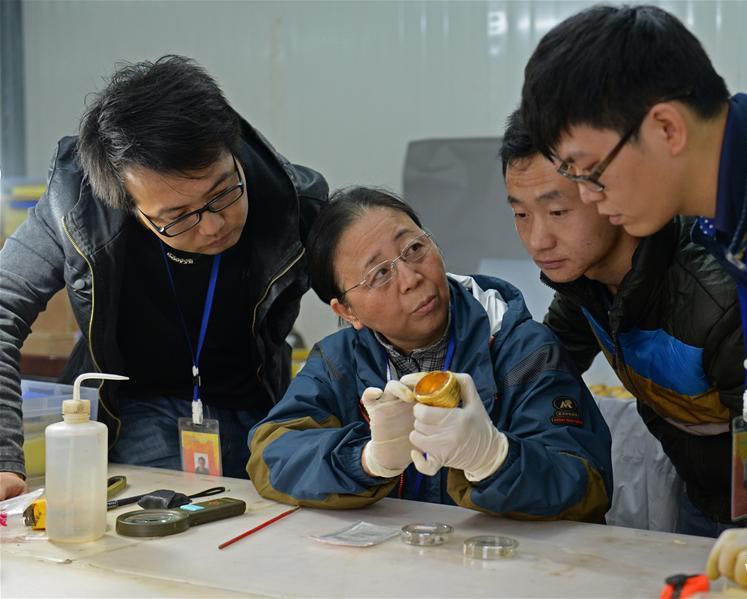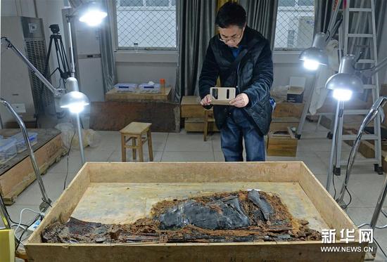 近日,?;韬钅怪鞴阻烟紫湟驯辉怂椭廖谋S梅?,考古人员会在这里进行内棺的实验室考古发掘工作。?;韬钅刮谋S梅课挥谀喜;韬钅挂胖肺鞑嗖坏?公里处,占地约4000平方米,内设5栋考古用房,文物被发掘出土后会立即转入文保用房进行应急处理。(万象 摄)