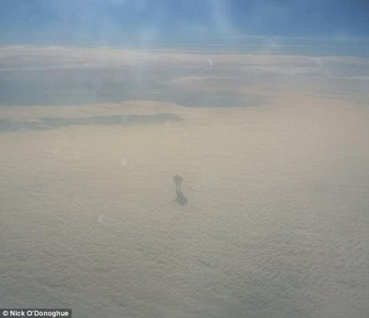 据香港《文汇报》1月18日报道,来自爱尔兰的尼克日前搭飞机进入9000米高空时,竟看到窗外云海中有一个神秘“人影”,这让他当场吓傻。当时,他从奥地利搭飞机,期间飞机进入9000多米高空时,他拿起相机向窗外拍摄云海,没想到却发现云海中有着一个神秘人形身影,就好像机器人走在云层上一般。