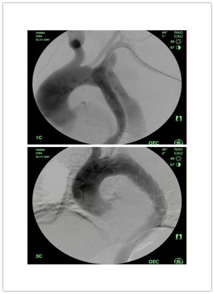 上图为治疗前 下图为植入支架后