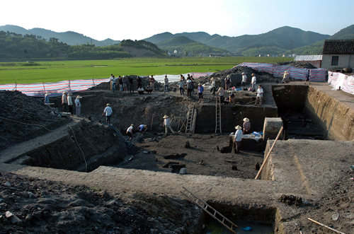 这个遗址,小记之前已经报道过好多次,它属于河姆渡文化体系,也就是河姆渡人住的地方,2004年开始发掘至今,已经12年了。去年刚鉴定出的茶树根,证明河姆渡人是最早种茶树的。
