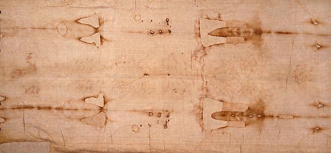 都灵裹尸布是一块引起了长达数世纪争议的布。它对于天主教徒来说有着神圣的意义——据说,它在耶稣下葬的时候包裹过他的尸体,上面还留有他的面容。不过,除了虔诚的信仰之外,这个传说的真实性没有任何的客观依据。1988年,通过碳-14年代测定,这块布上的纤维来自于中世纪。这个结论向科学界证明了这块所谓的裹尸布是伪造的。