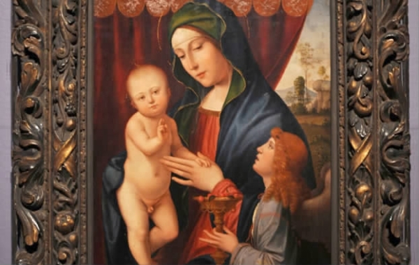 图为伪造的《圣母圣子与天使》。