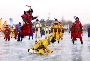 昨天是大寒节气,北海公园上演了一场别开生面的冰嬉表演。首席摄影记者 吴宁/摄