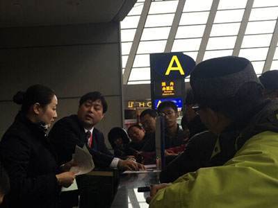 旅客与工作人员交涉