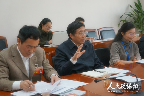 1月18日,在厦门市政协十二届五次会议的致公、侨联界别的联合小组讨论会上,厦门市政协主席张健(左二)指出,港澳台侨的工作非常重要,要多进行交流交往。照宁 摄