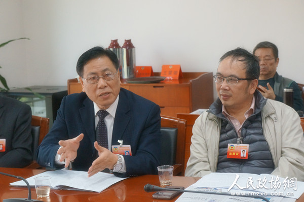 1月18日,在厦门市政协十二届五次会议的致公、侨联界别的联合小组讨论会上,杨行健委员(左一)从研究的角度,建议打通侨台工作的交流渠道,听到更真实的“好声音”。