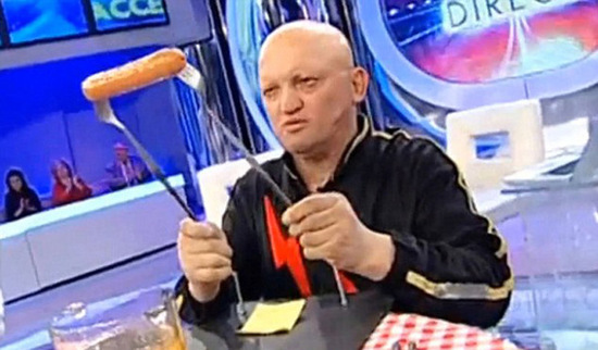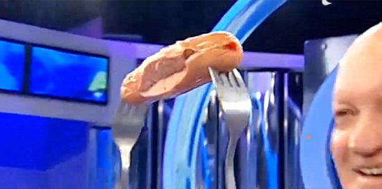 斯特鲁加在罗马尼亚一档直播节目中大秀徒手烤香肠绝技,震惊在场观众。