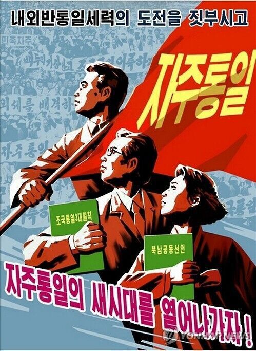 据报道,以朝鲜人民或红色旗帜为背景的每张宣传画上都印有“祖国统一三大原则和朝韩宣言是民族共同的统一大纲”、“阻挡战争的危险一起来守护朝鲜半岛的和平和安定吧”和“粉碎一切反统一势力迎接统一新时代到来”等宣传语。