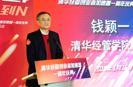 2016年1月16日,清华经管创业加速器一周年庆典在中关村创业大街昊海楼三层举行。清华大学经济管理学院院长钱颖一在活动中做了《创新创业,从1到N》的主题演讲。