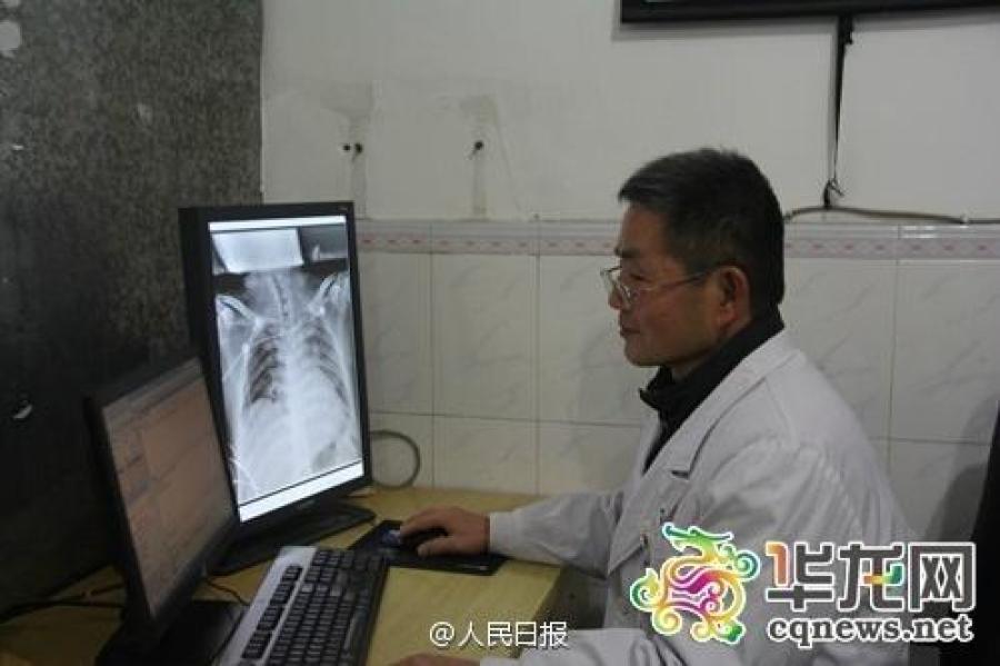 1月21日日上午,这位救人后默默离开的无名英雄被媒体找到,他是重庆第九人民医院放射科副主任医师栾红军?!翱吹铰渌睦锩欢嘞?,只想着救人要紧?!辫锖炀谝皆悍派淇拼邮?3年医学影像临床诊断及教学工作、今年已54岁。工作中的栾红军。齐宏 摄 华龙网