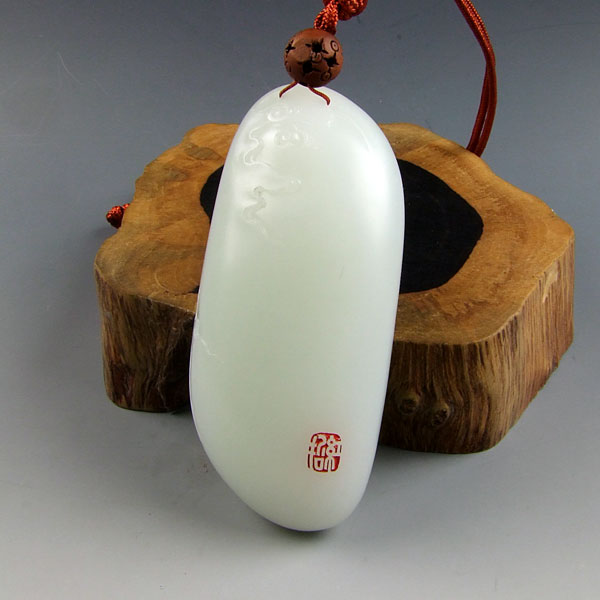 羊脂玉的油性非常大,经常右手抚摸,就好像其表面凝结了一层油脂一样,手感相当细腻。它油性大的最好证明就是用一根细线吊着羊脂玉投于水中,然后提起来能够达到滴水不沾的地步。