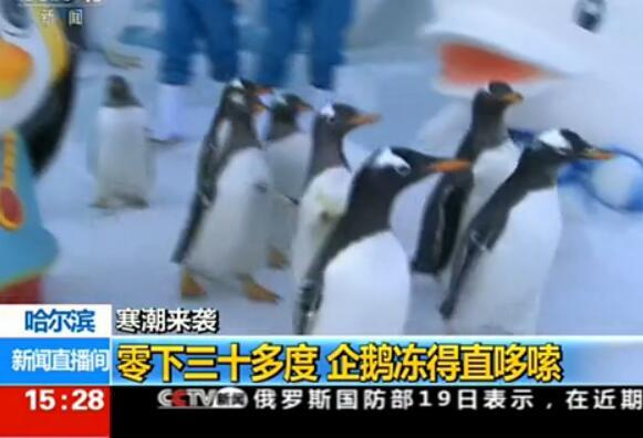 2016中国今年经历的这次寒潮是近年来罕见的,各地新闻对这次寒潮做出了各种“喜感”报道,让民众不再一个人冷。图为哈尔滨遇罕见低温 ,企鹅个个冻得直哆嗦。