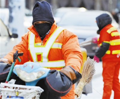 3个小时后,她把7000平方米的责任区打扫一遍后,路上行人渐渐多起来。王凤英说,一上午,手已经冻得有些麻木,鼻子也有些肿胀。