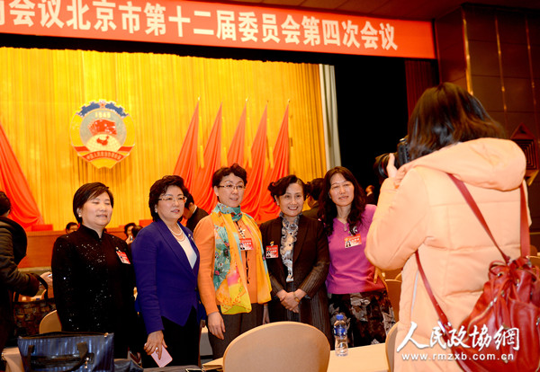 北京市政协全会举行第一场大会发言会后委员合影留念。田福良 摄