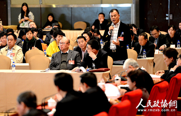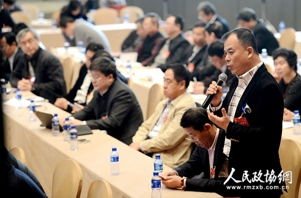 23日下午,北京市政协全会举行两场专题座谈会。图为李辙委员在专题会上就引进大型项目助推北京经济问题向市长发问。田福良 包松娅 摄