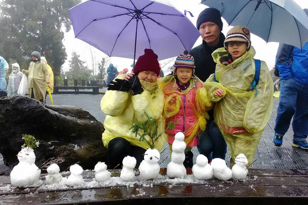 家住台北的蔡先生带着自己的三个孩子上山看雪,其中最小的男孩今年八岁,第一次看到雪的他兴奋不已,正不知疲倦地拿着雪球向哥哥姐姐发起“进攻”,完全顾不上休息。