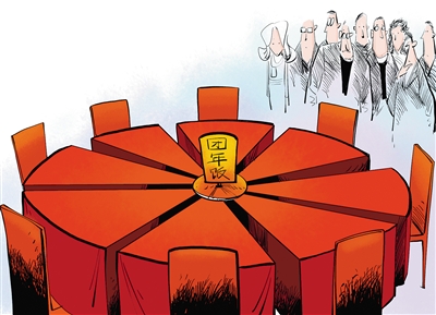 团年饭是家人过年团聚的重要饭局。春节将至,武汉市民李女士20多口大家族在餐馆吃完团年饭,每人从口袋里掏出100元支付各自的饭钱。结完账,一家人却心情郁闷地走出了餐馆。吃团年饭AA制,七成网友支持三成反对。(1月24日《武汉晚报》)