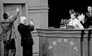 昨天下午,政协北京市第十二届委员会第四次会议闭幕后,委员们在主席台拍照留念。 首席摄影记者 蔡代征/摄