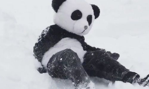 大熊猫玩雪视频走红 美男子跟风穿熊猫服玩雪